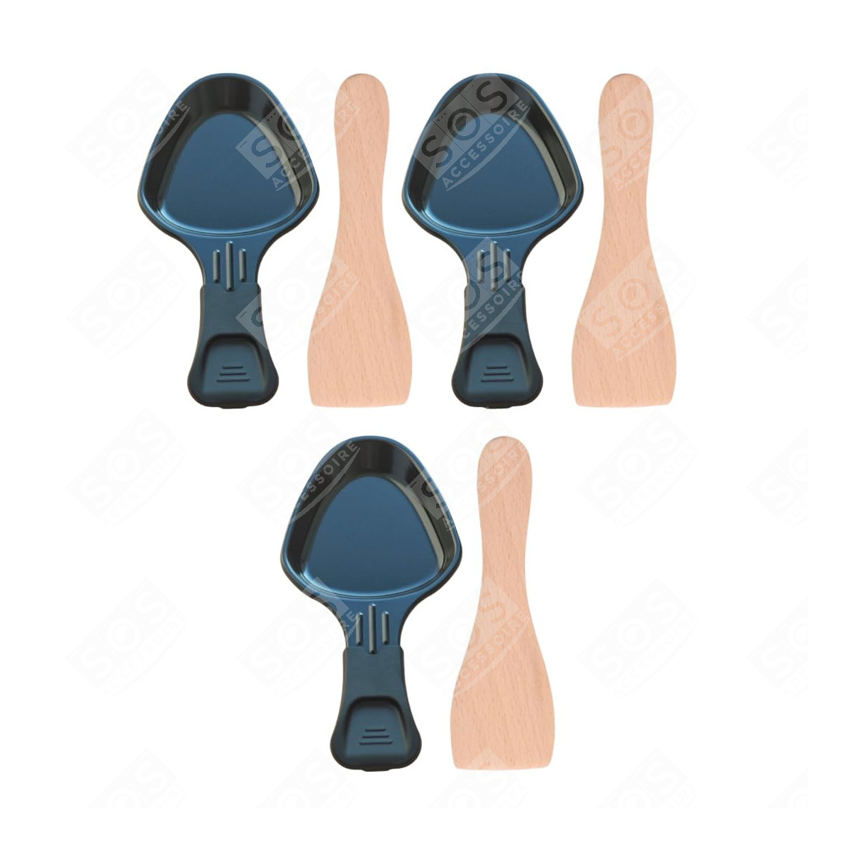 Set di 3 coppette da raclette e 3 palette in legno per pentolino, spatola raclette Grill, Wok e Macchina per Raclette - AS306001, AS306003