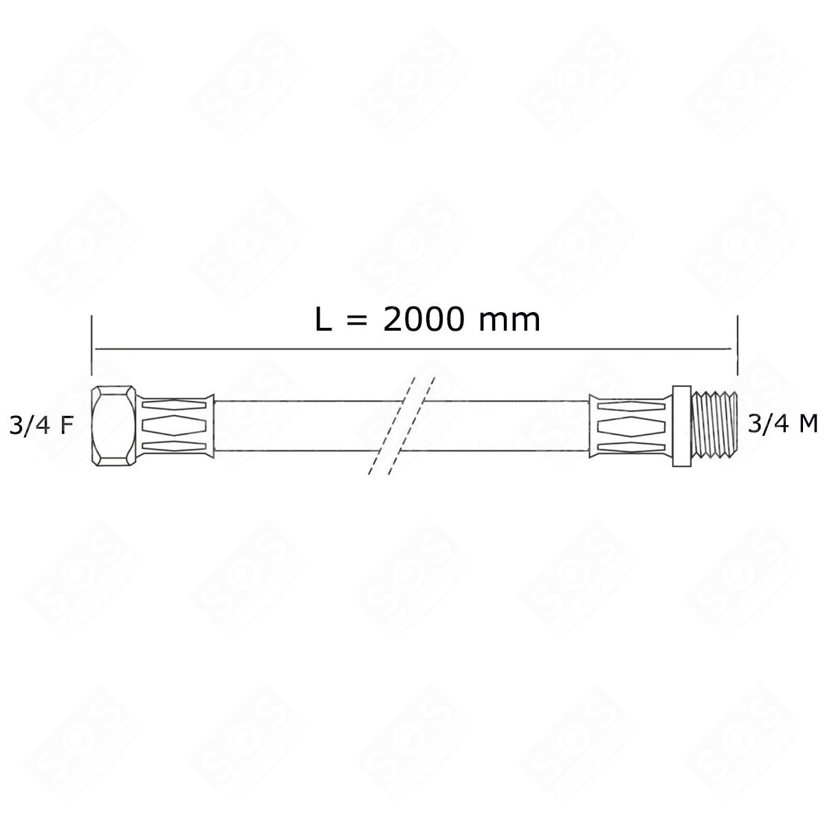 Tubo di ingresso acqua universale con raccordi dritti (L2000mm 3/4 F x 3/4 M) Lavatrice - 3666356132825